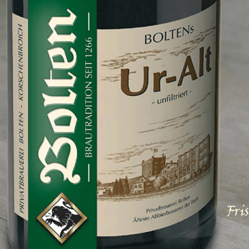 Das Besondere beim BOLTENs Ur-Alt ist, dass es unfiltriert, also naturtrüb, ist. Die meisten Biersorten von heute sind klar oder blank. Sie werden filtriert, weil viele Konsumenten den Anblick eines „klaren“ Bieres, sei es nun ein Alt oder Pils, appetitlicher finden. Das ist auch in Ordnung, weil das Auge ja bekanntlich „mitschmeckt“.
